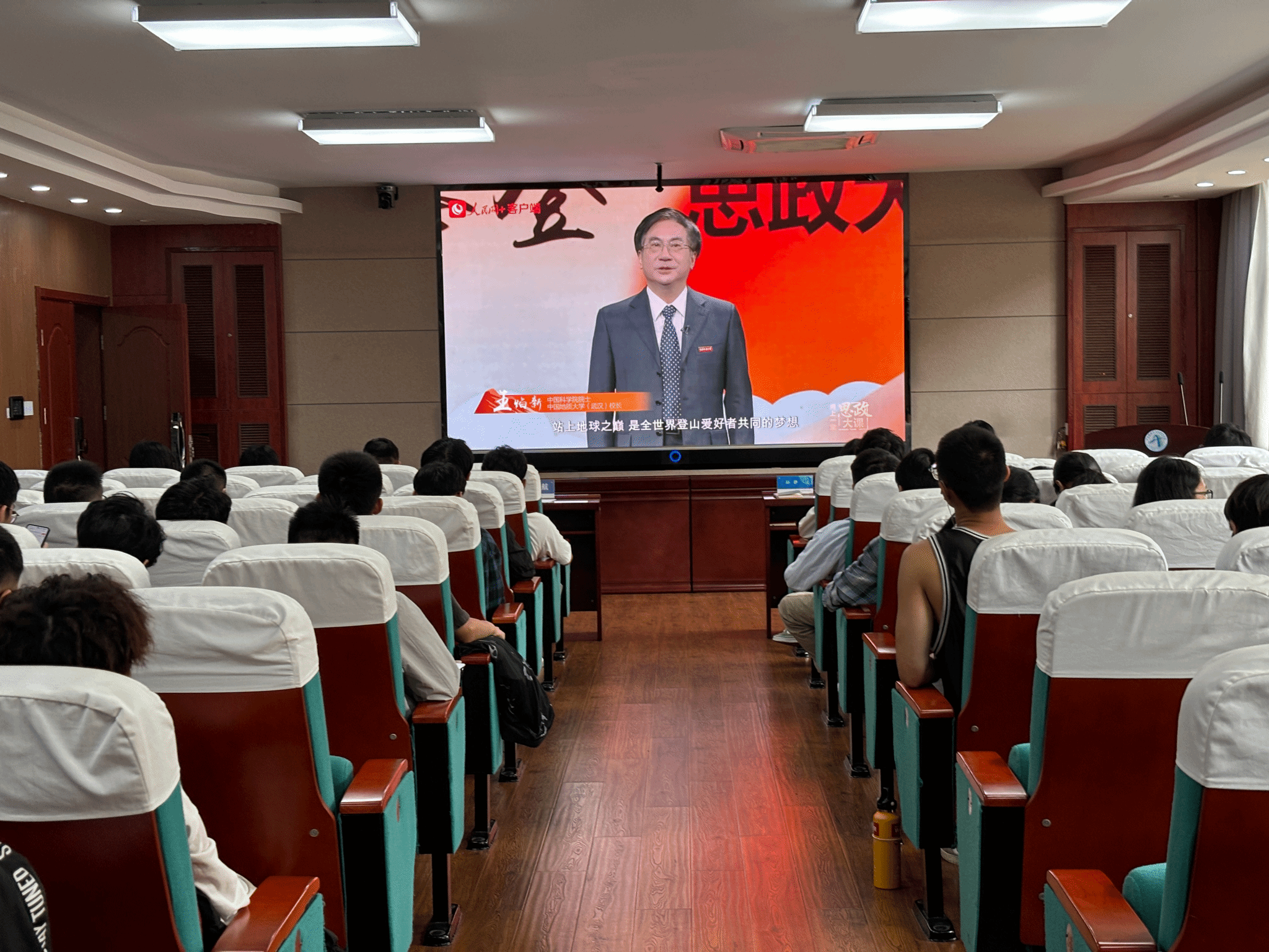 最后全体与会师生共同观看了《同上一堂“为国攀登”思政大课》。学习一代代攀登者“扎根中国、胸怀天下,勇攀高峰、追求卓越”的精神品格,进一步坚定理想信念,牢记作为新时代青年所肩负的科技报国、强国有我的责任与使命。
