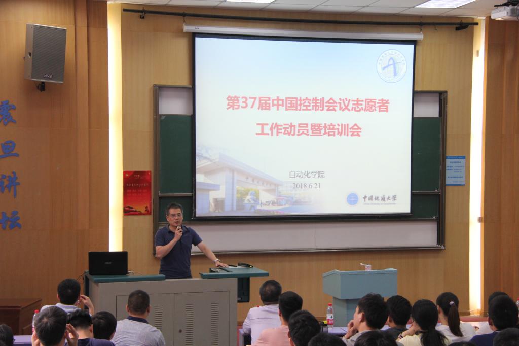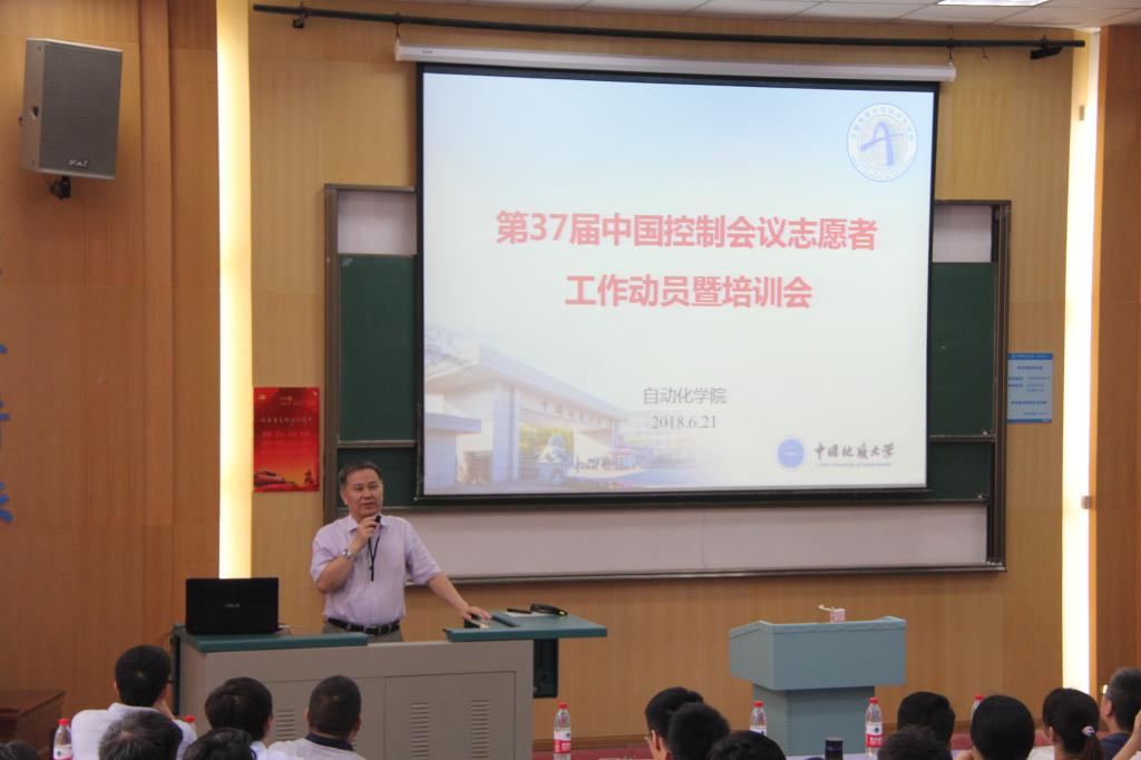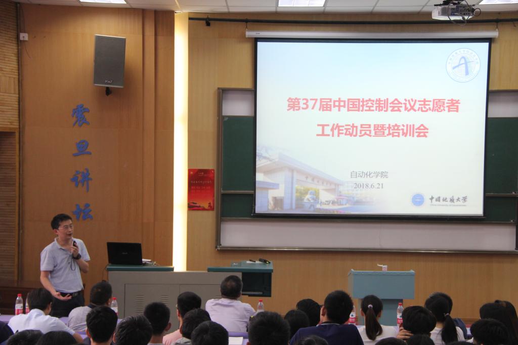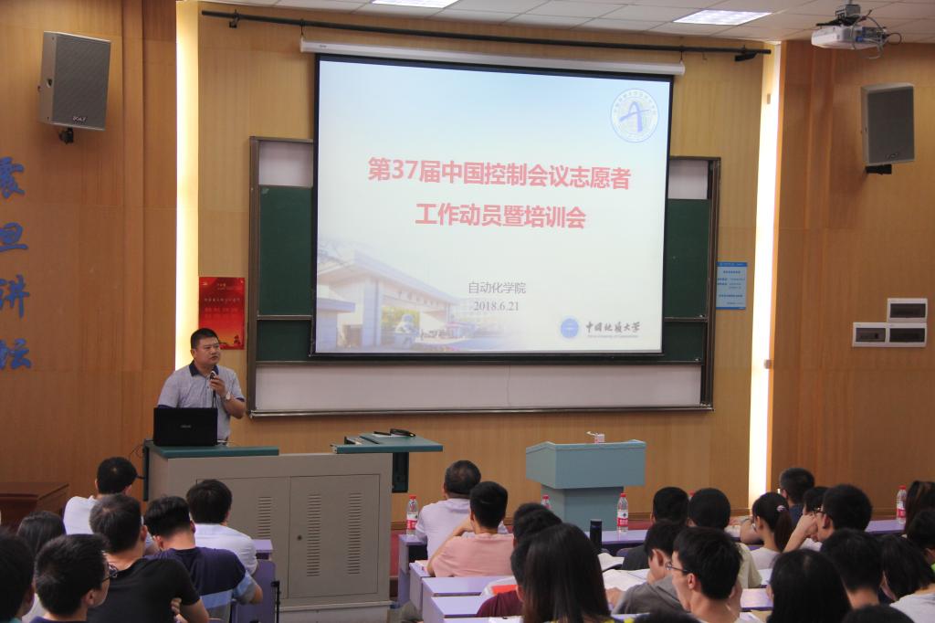 (通讯员 李科)2018年6月21日下午14:30,第37届中国控制会议(The 37th Chinese Control Conference,以下简称CCC2018)志愿者动员暨培训会于教三楼111教室圆满举行。出席本次会议的领导老师有我院院长、CCC2018总主席吴敏老师,我院副院长、CCC2018组织委员会主席曹卫华老师,我院副院长、CCC2018程序委员会主席陈鑫老师,我院党委副书记何建新老师,我院团委书记谭文伦老师,校团委办公室主任黄蕾老师。会议由何书记主持。