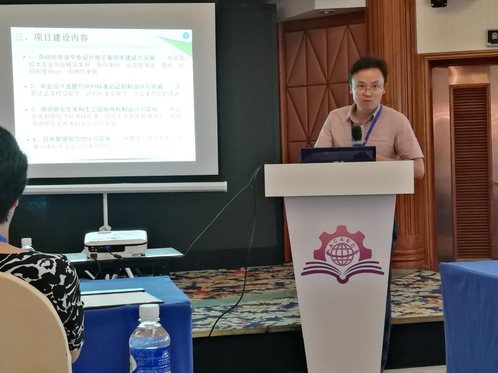 会上,我院吴敏教授担任分会场主席。熊永华教授、贺良华副教授和张莉君副教授分别就所撰写的“面向智能制造发展需求的自动化专业本科毕业设计改革方案”、“中约大学自动化专业人才培养模式初探”和“自动化专业实验实践教学体系和教学模式改革与探索”等论文作了宣讲。