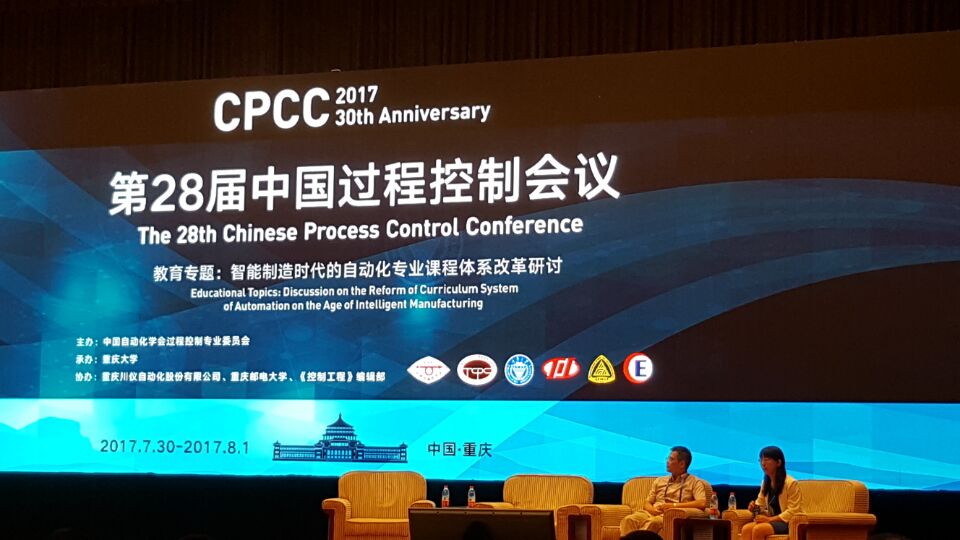 2017730-81日,第28届中国过程控制会议(CPCC 2017)在三千年巴国故地,八百岁山水名城的美丽山城——重庆举行。此次会议由重庆大学承办,《控制工程》编辑部、重庆邮电大学、重庆川仪自动化股份有限公司协办。同时,本届大会举行中国过程控制会议30周年的纪念仪式和相关活动。我院吴敏教授、曹卫华教授、陈鑫教授、熊永华教授等四人参加了会议